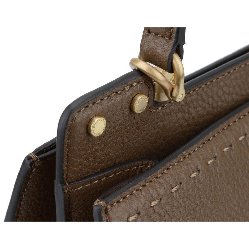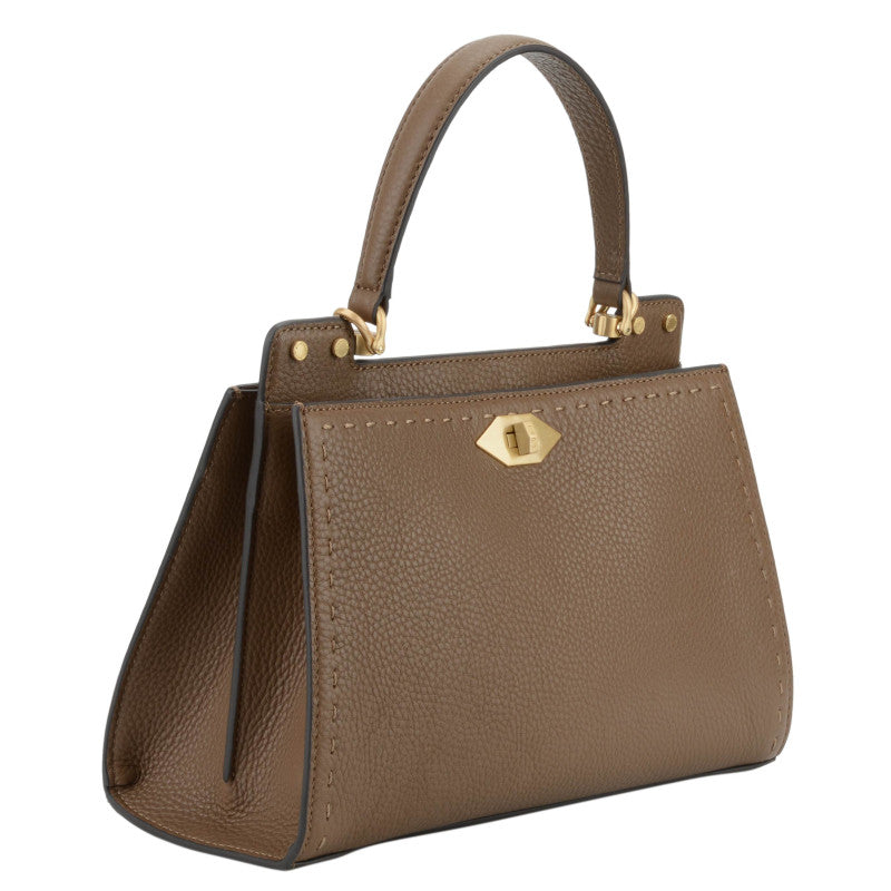 Fabriqué en peau de veau, ce sac offre une finition texturée qui allie durabilité et esthétique. Les coutures visibles ajoutent une touche artisanale, tandis que sa silhouette structurée avec des bords légèrement arrondis lui confère un style à la fois moderne et classique.