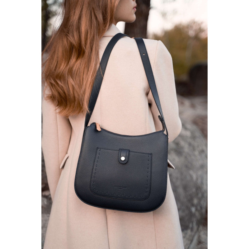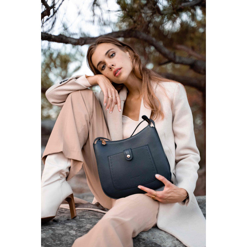 La Bride Soft | Besace marine est un accessoire incontournable pour les femmes à la recherche d'élégance et de praticité. Fabriquée en cuir grainé, sa texture douce et résistante apporte une touche de sophistication à son design.