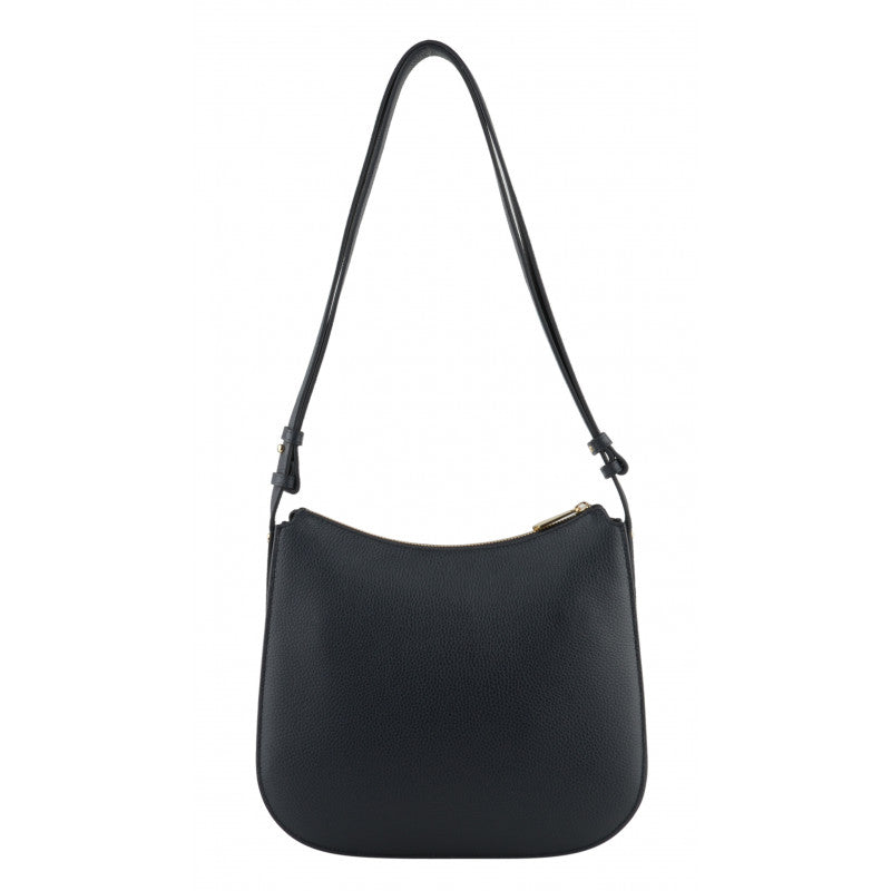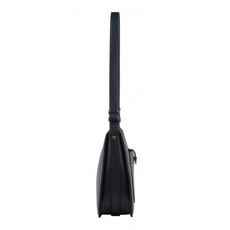 Cette besace se distingue par sa couleur bleu marine, une teinte classique et intemporelle qui s'associe facilement à diverses tenues. Sa silhouette arrondie et légèrement structurée, avec un rabat avant, lui confère un aspect chic et fonctionnel.