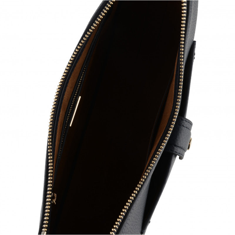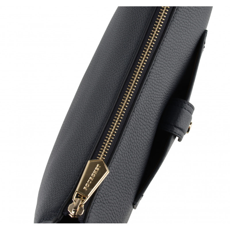 - Compartiment principal : Refermable par une fermeture éclair dorée, il assure la sécurité de vos effets personnels.