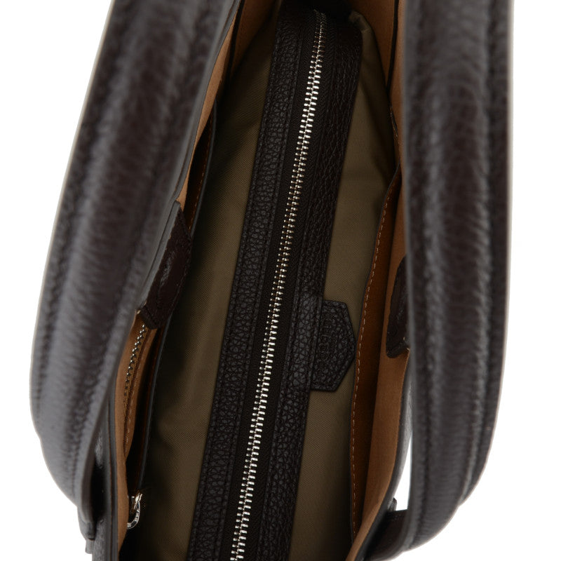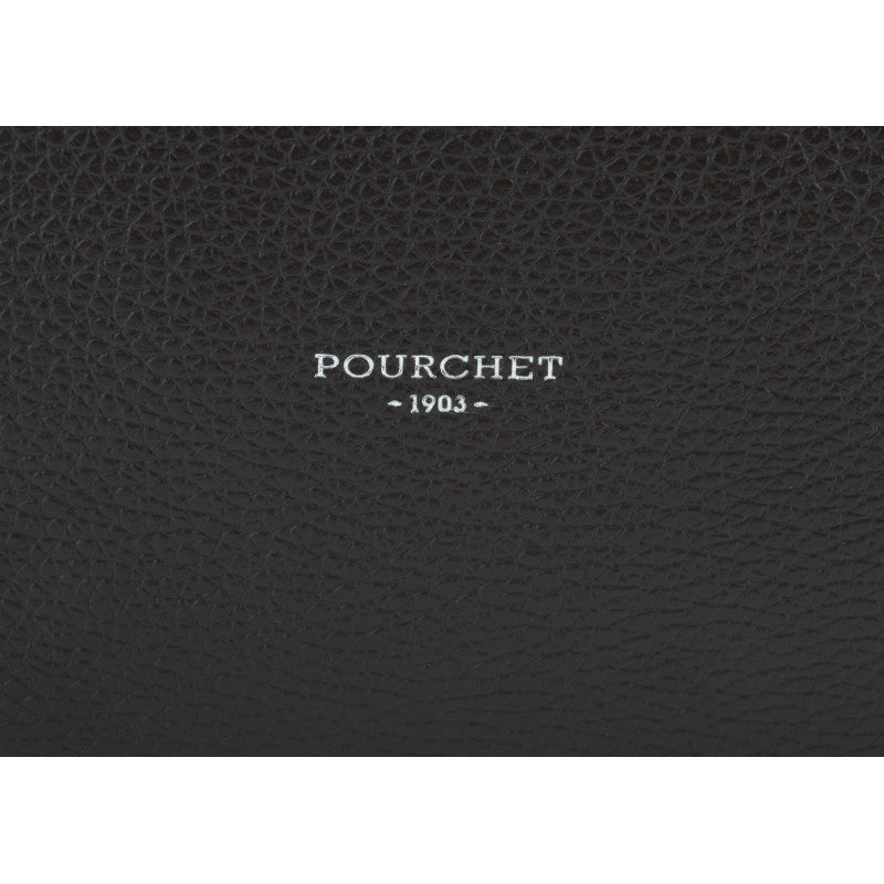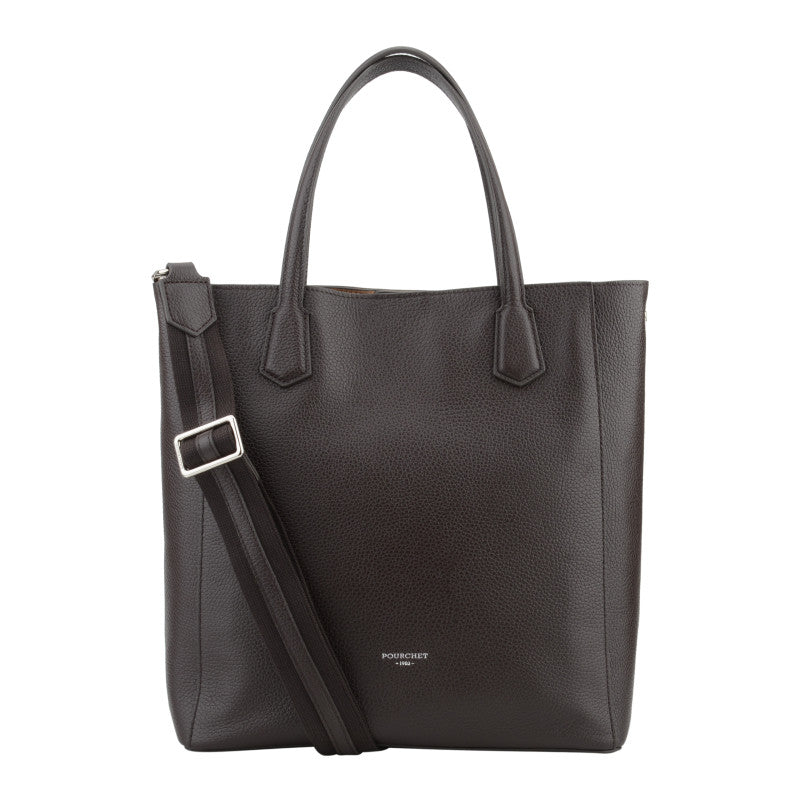 À l'intérieur, le cabas est bien organisé avec des poches pour un rangement efficace, incluant une poche zippée pour vos objets de valeur. Le logo "Pourchet 1903" est discrètement embossé sur le devant, ajoutant une touche de sophistication sans être trop ostentatoire.