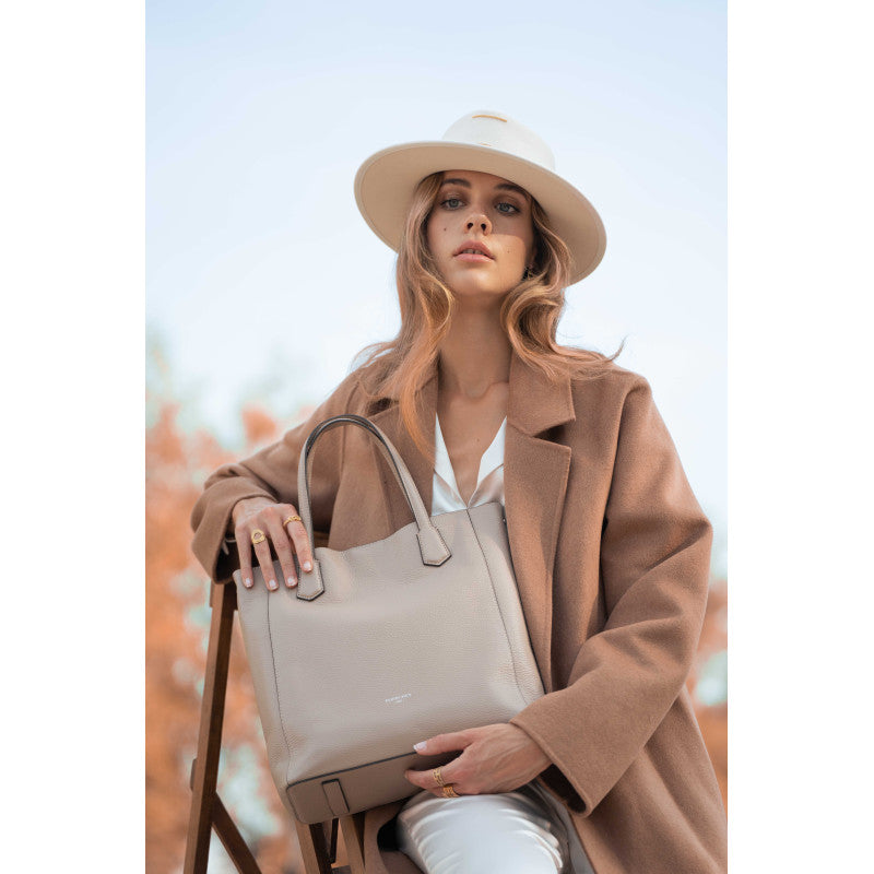 Le cabas Corso en couleur mastic de la marque Pourchet est un accessoire à la fois élégant et fonctionnel, idéal pour s'adapter à divers styles de vie.