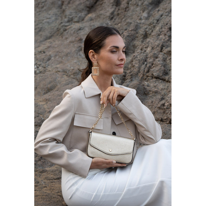 Le Club | Sac pochette dorée est l'accessoire idéal pour sublimer votre tenue, que ce soit pour une soirée élégante ou une sortie décontractée. Sa couleur dorée, avec une finition texturée, lui confère un aspect à la fois chic et raffiné.