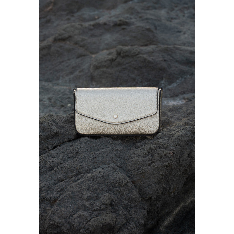 Ce sac pochette dorée est un choix parfait pour celles qui cherchent à allier fonctionnalité et style. Son design polyvalent et son allure glamour en font un incontournable dans votre garde-robe.